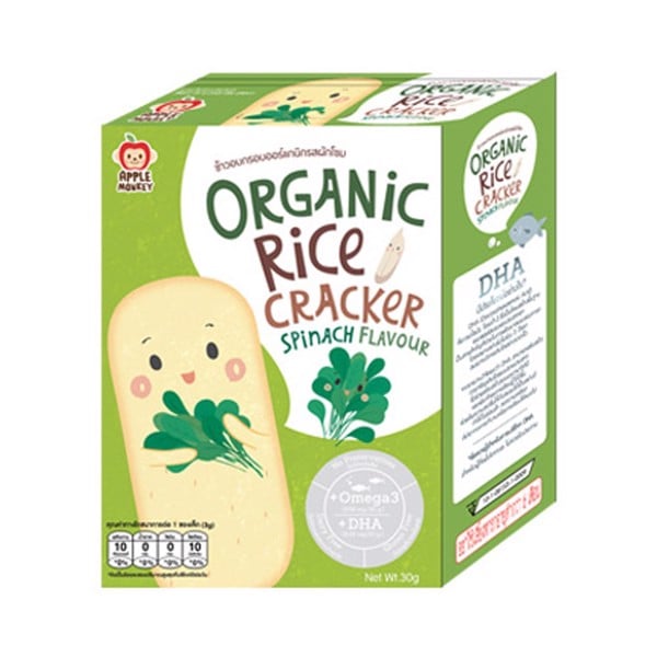 Bánh Gạo Bổ Sung Omega 3 Và DHA Apple Monkey Vị Rau Bina